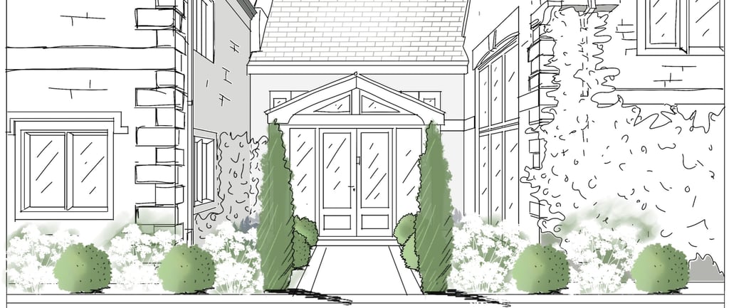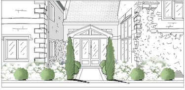 The Proposal - A simple plan was proposed to replace the vulnerable Buxus with much more resilient Yew and Italian Cypress to create a striking entrance.