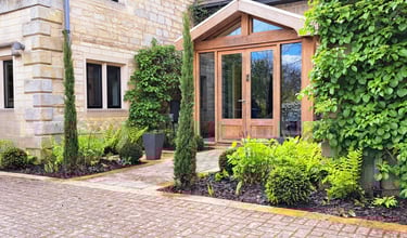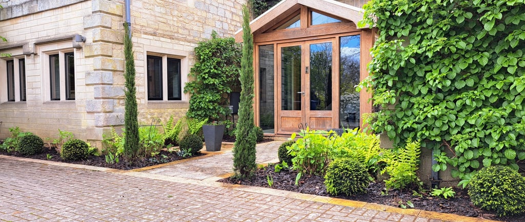 The Solution - The front entrance shortly after plant up. Look forward to checking back when the new plants have grown to match the scale of the house.