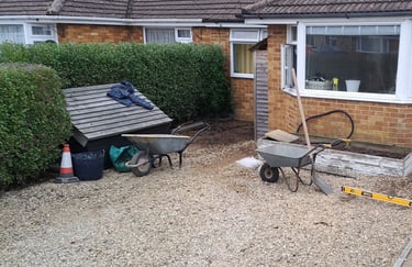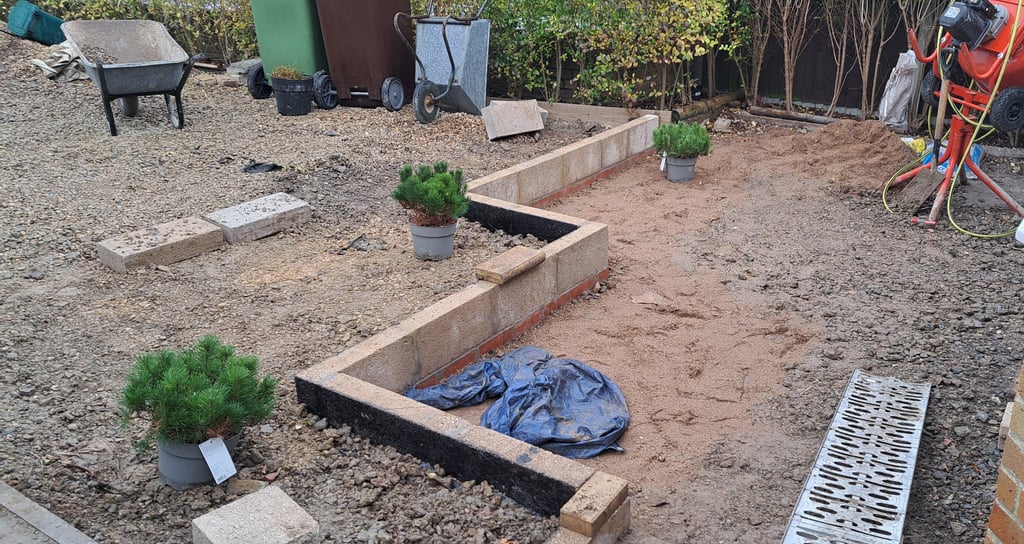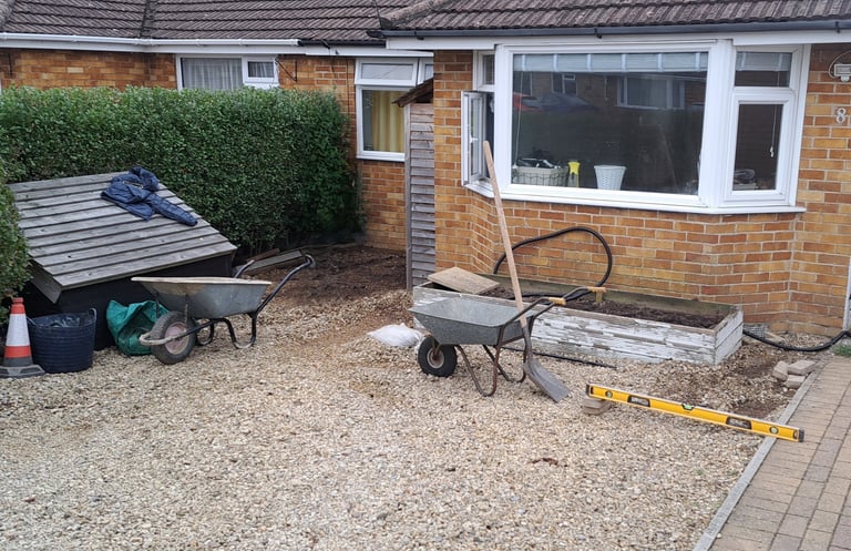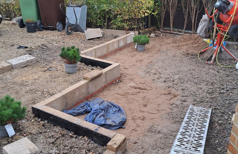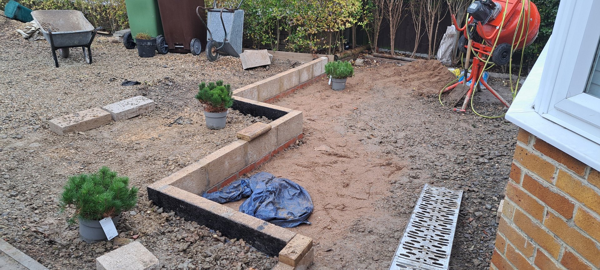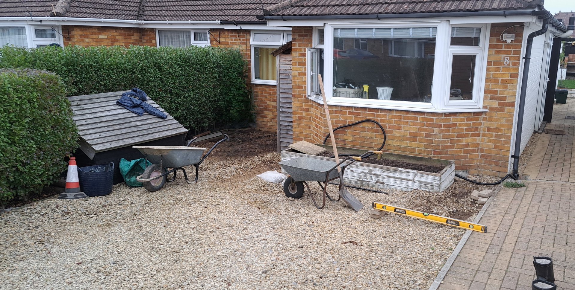 The ground at the front of the property was excavated and small retaining wall was built to split the levels.