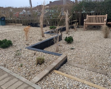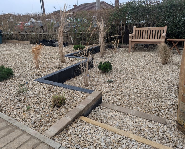 This small, unappealing drive not only looked dull, but was also built too high up against the house causing damp issues in heavy rain. The brief was to design a small garden that looked appealing and sorted out the practical problems.